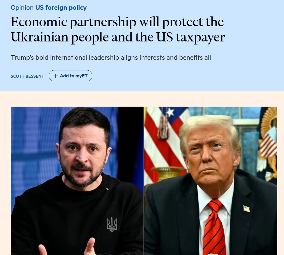 당사국인 우크라이나를 제끼고 초강대국인 미국-러시아가 우크라이나 종전 협상을 진행한다고 알려져서 국제사회의 쌍욕을 먹고 있는 가운데...미국 재무장관인 스콧 베센트가 파이낸셜 타임스(FT)에 이와 관련한 미국의 입장을 비교적 상세하게 기고했다.